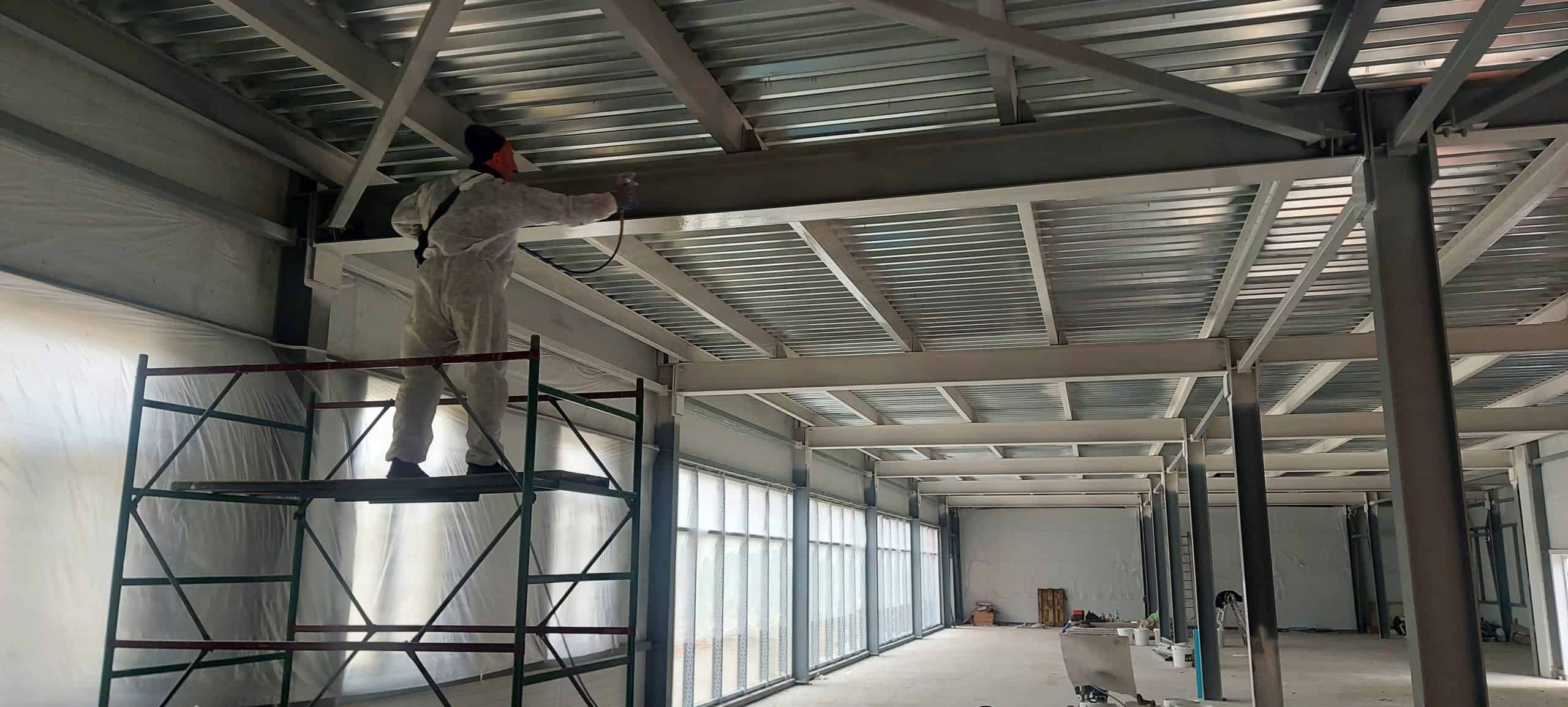 процес механизированной покраски помещений